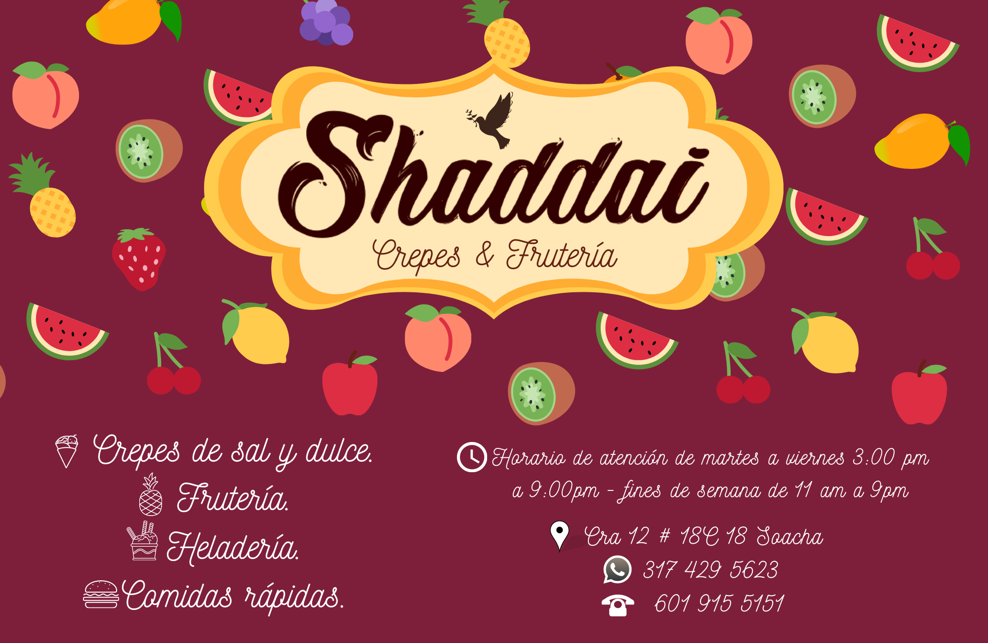 Todas las ensaladas llevan una base de papaya, melón, banano, crema de leche y queso.